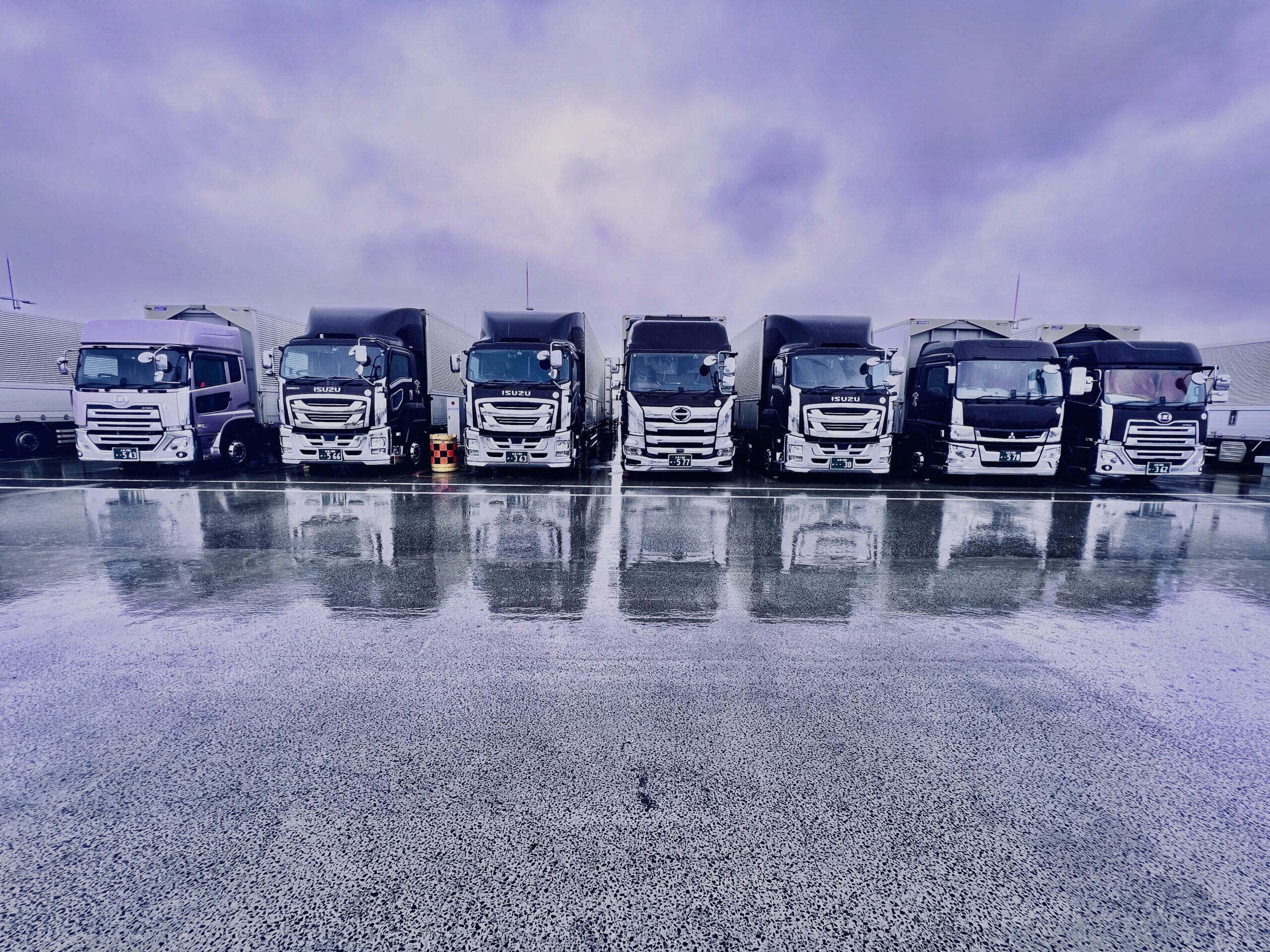 パイロン・LED照明にて構内事故の注意喚起を実施しています(一部路線ドライバー)